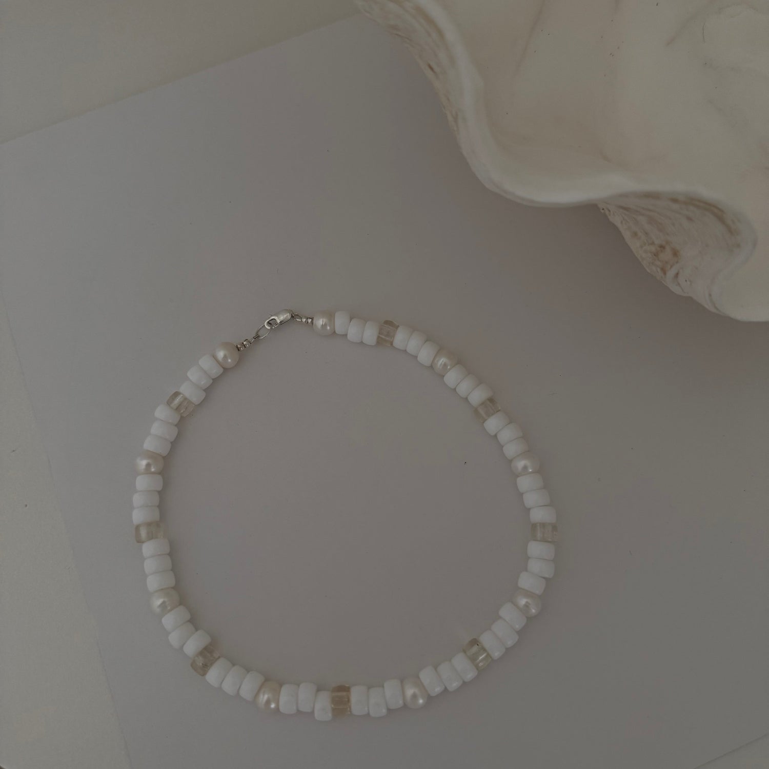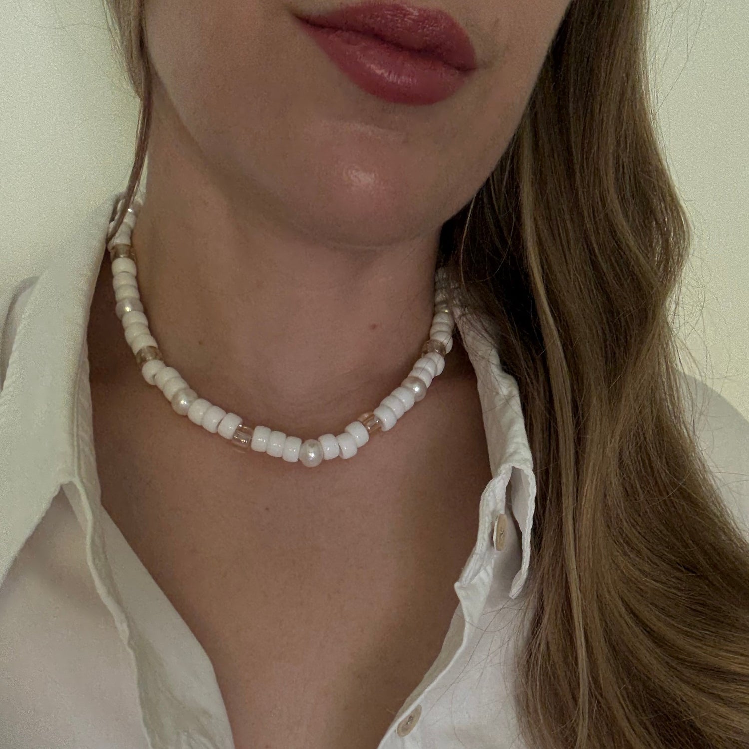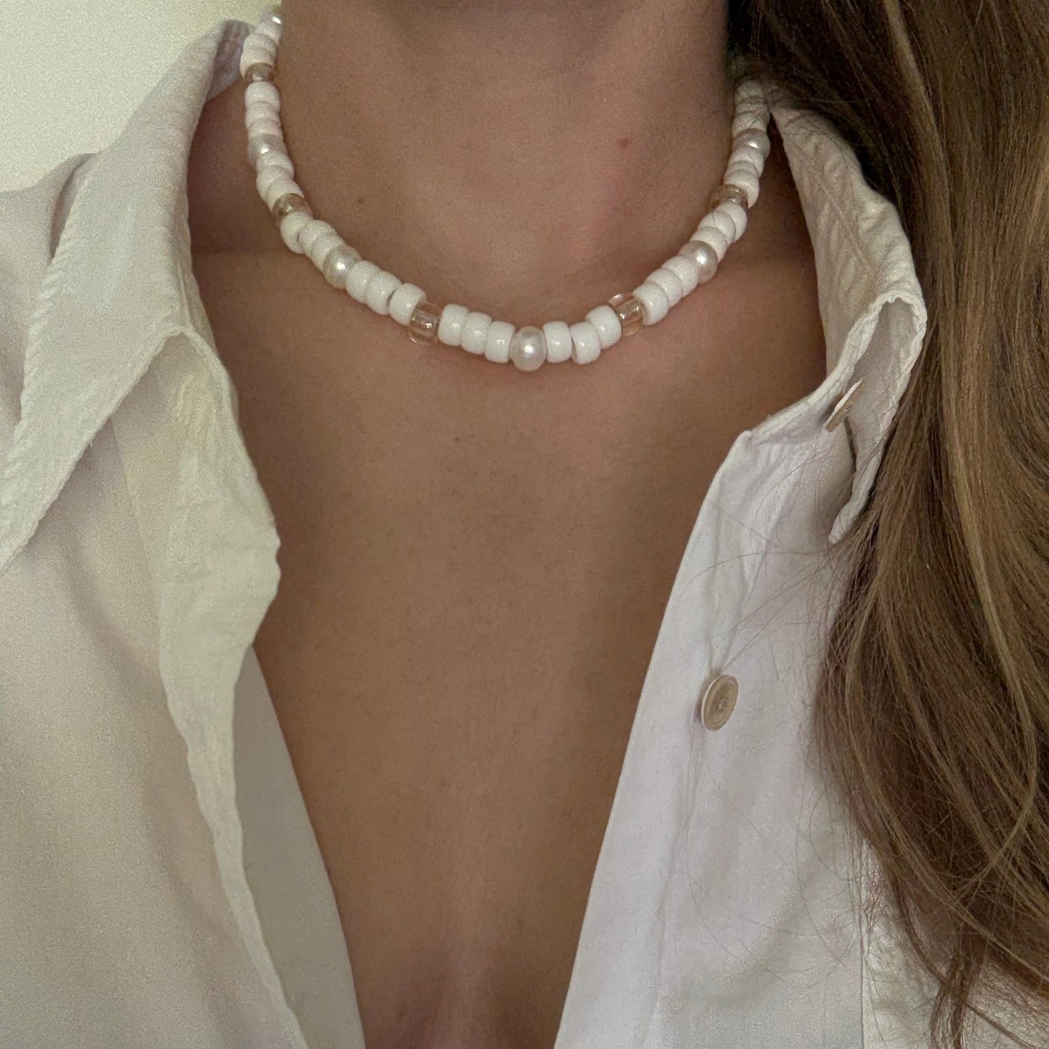Light as air and full of charm, Cloud Pop mixes glossy white and clear pony beads with freshwater pearls for a playful-meets-polished look. A modern nod to childhood nostalgia—easy to wear, even easier to love.
