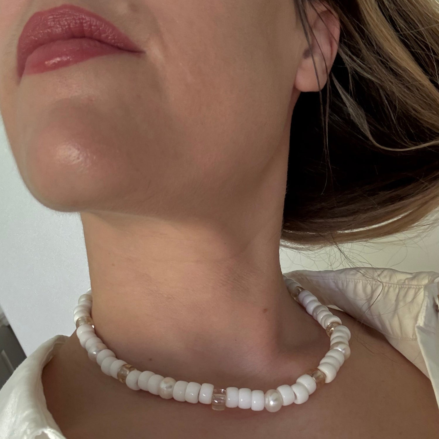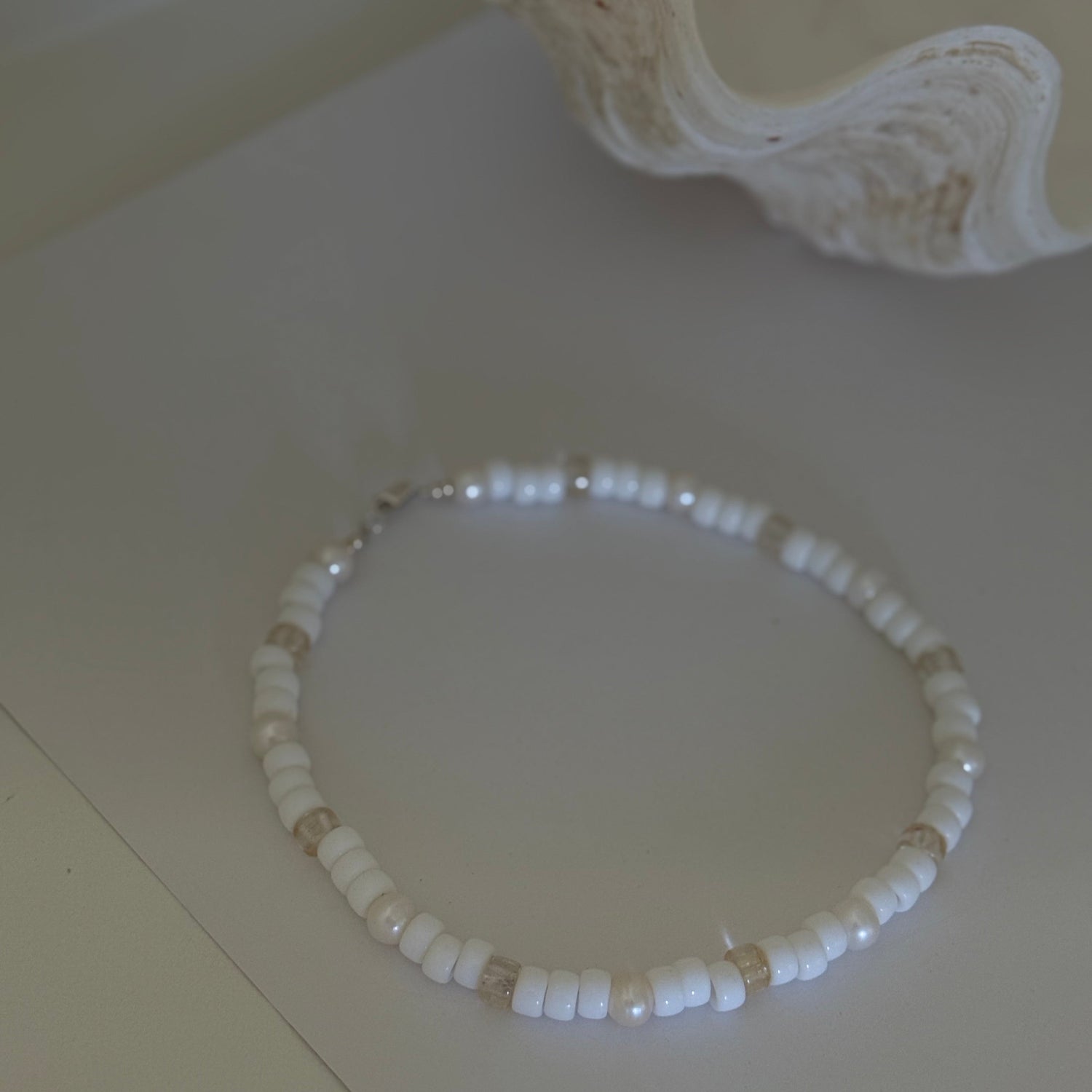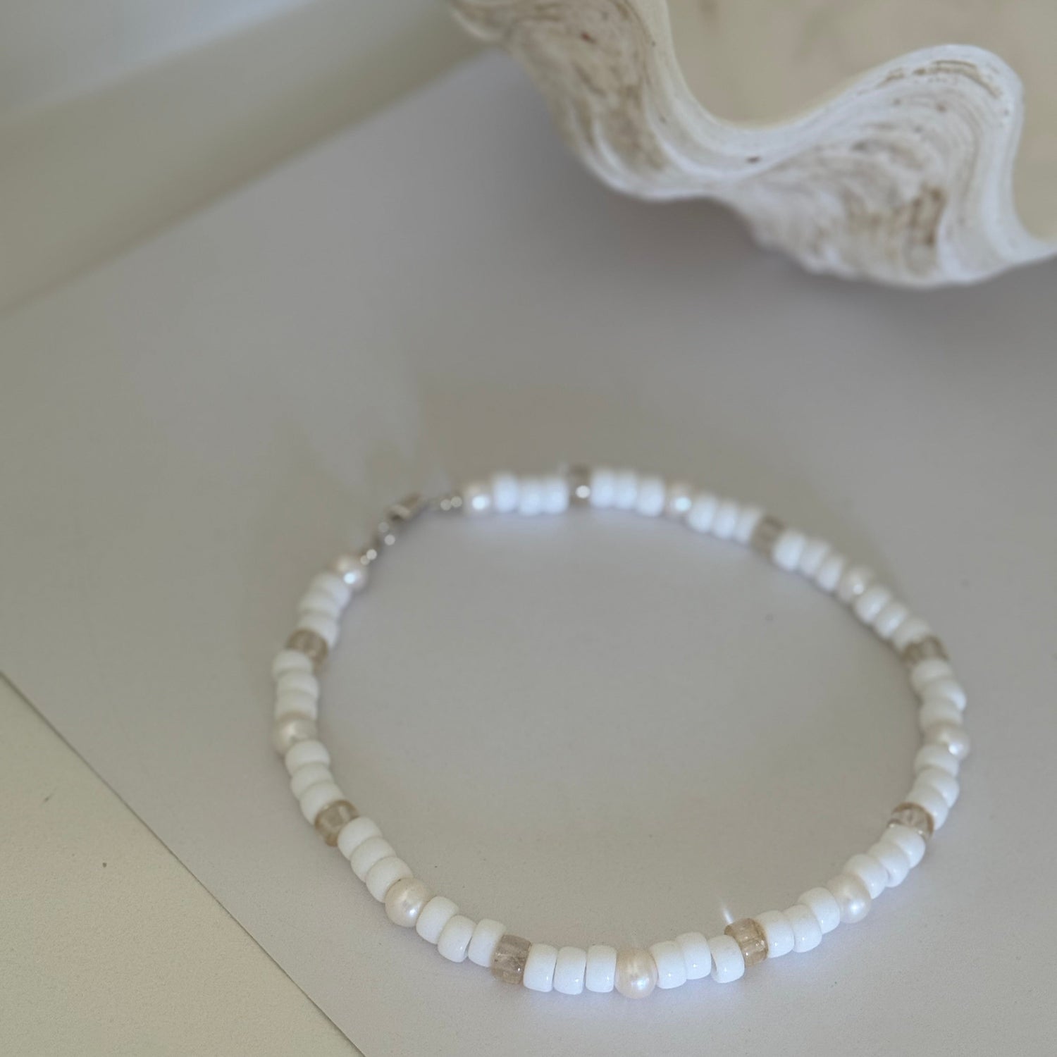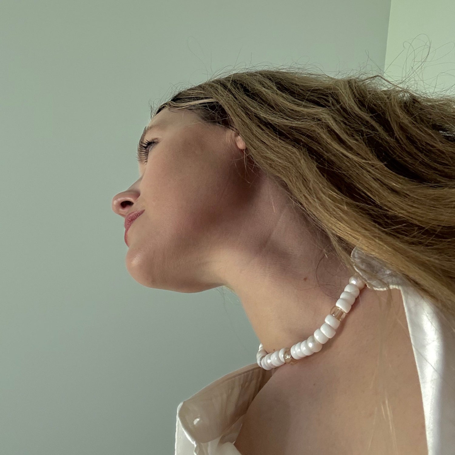 Light as air and full of charm, Cloud Pop mixes glossy white and clear pony beads with freshwater pearls for a playful-meets-polished look. A modern nod to childhood nostalgia—easy to wear, even easier to love.