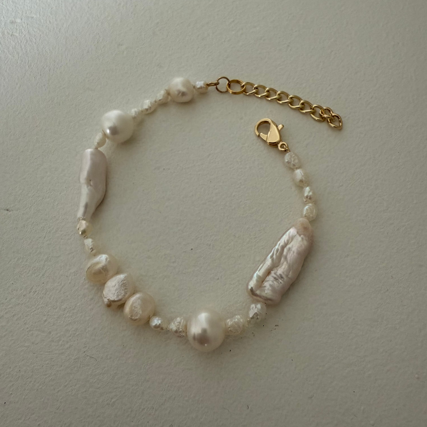 Baroque freshwater pearls, Keshi freshwater pearls, Freshwater biwa pearls, Freshwater nugget pearls, Hand knotted on silk, Gold filled closure.
