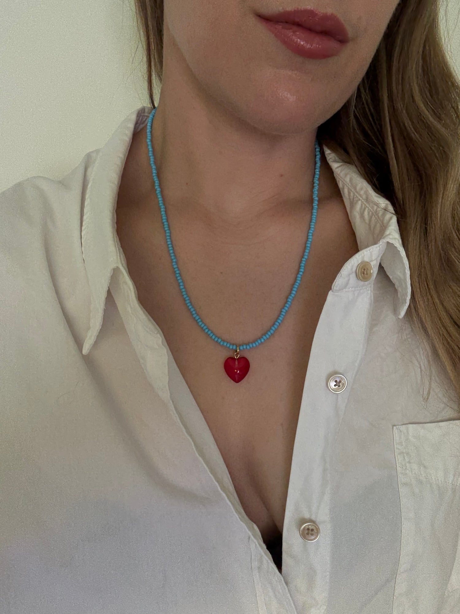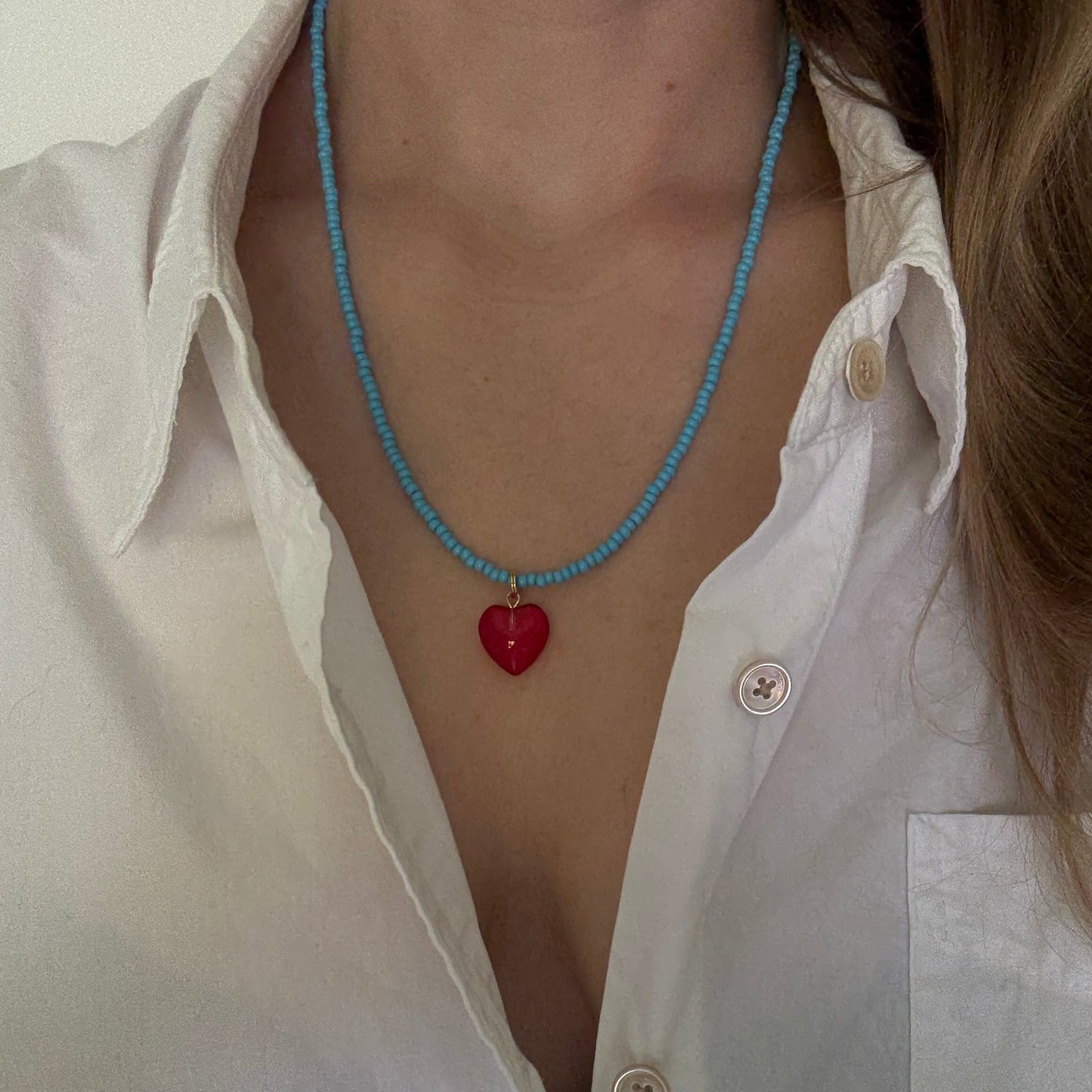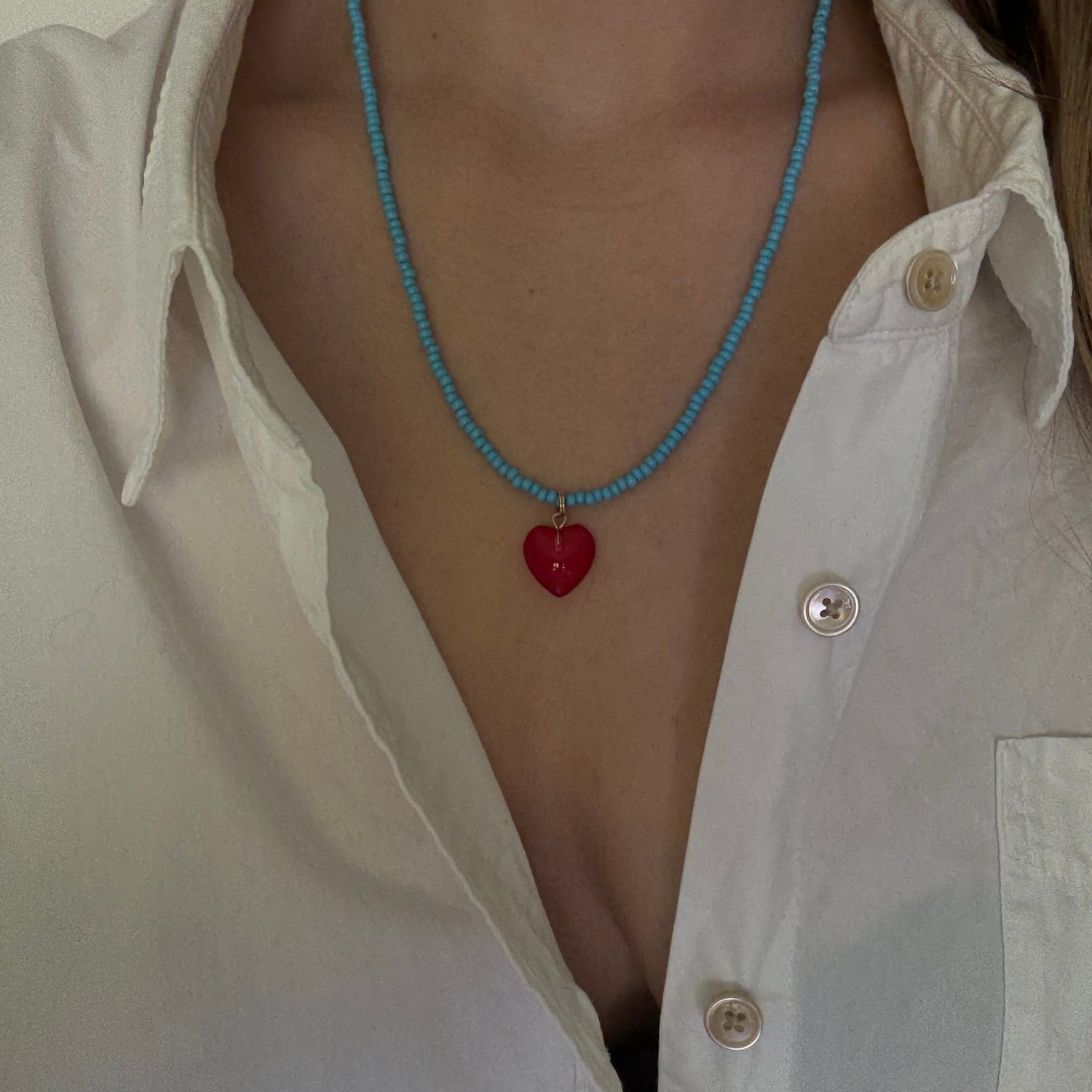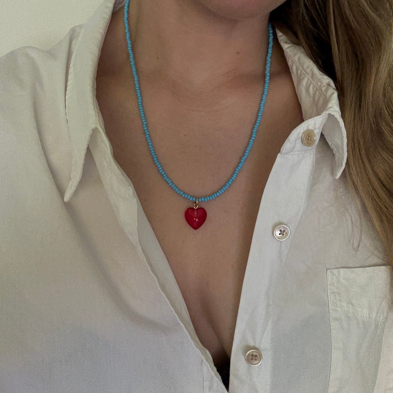 Sweet with a little sass, True Blue features icy light blue seed beads and a translucent red heart charm for the perfect pop of love. Handmade with care and full of charm, it’s a playful piece that’s easy to love—and even easier to layer.