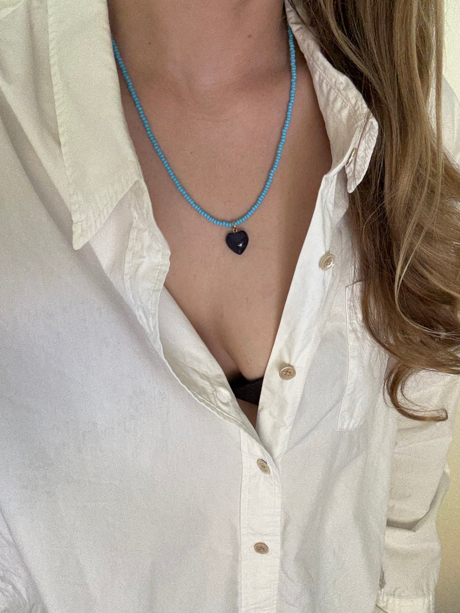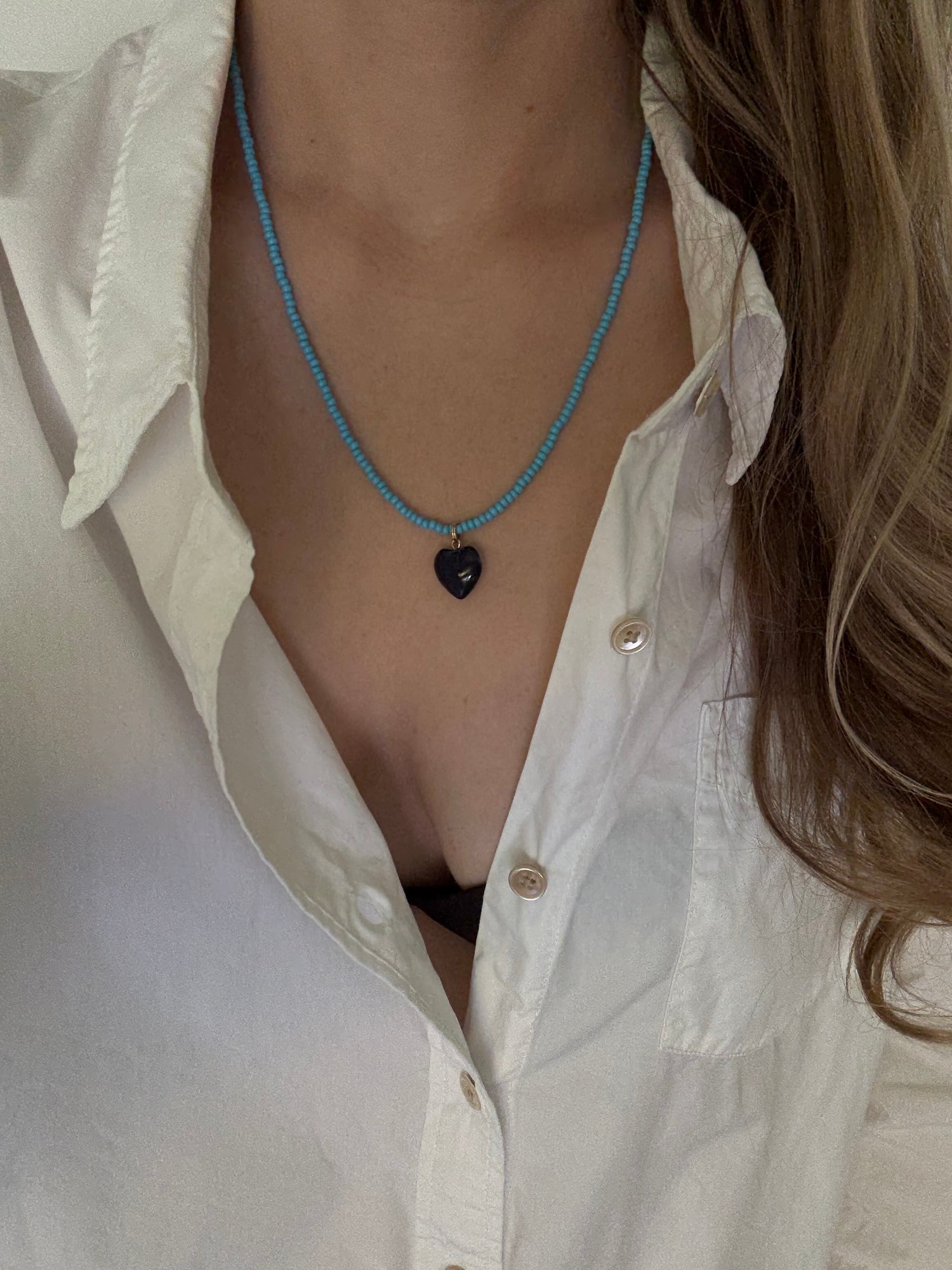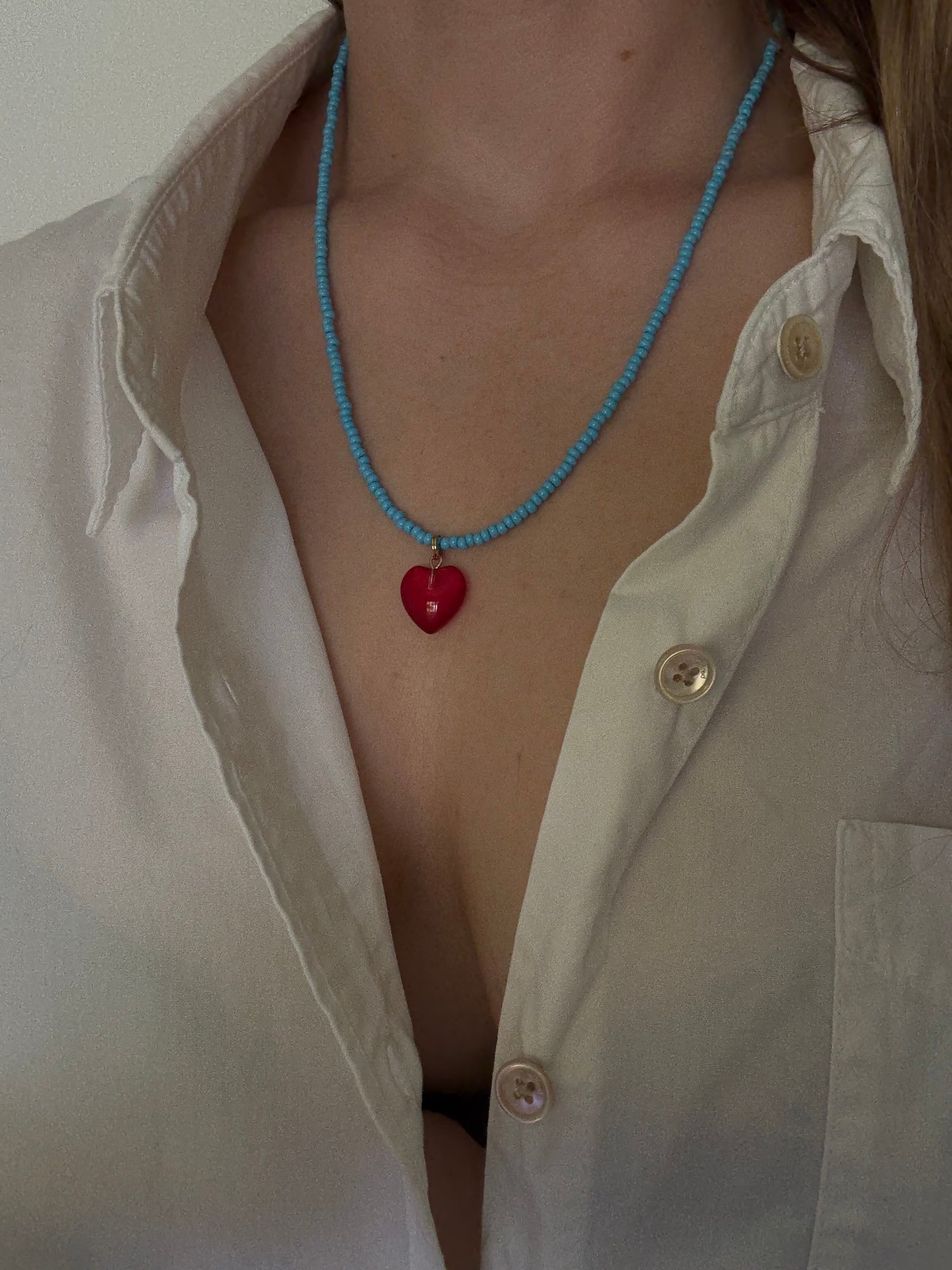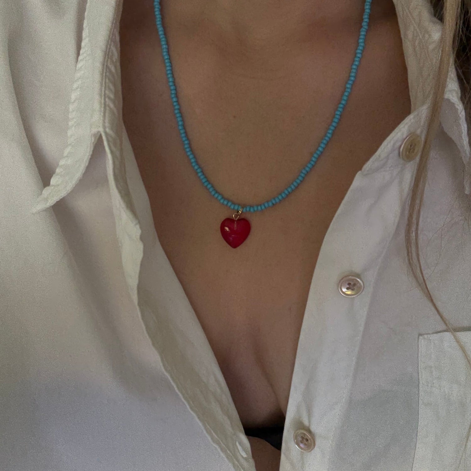 Sweet with a little sass, True Blue features icy light blue seed beads and a translucent red heart charm for the perfect pop of love. Handmade with care and full of charm, it’s a playful piece that’s easy to love—and even easier to layer.
